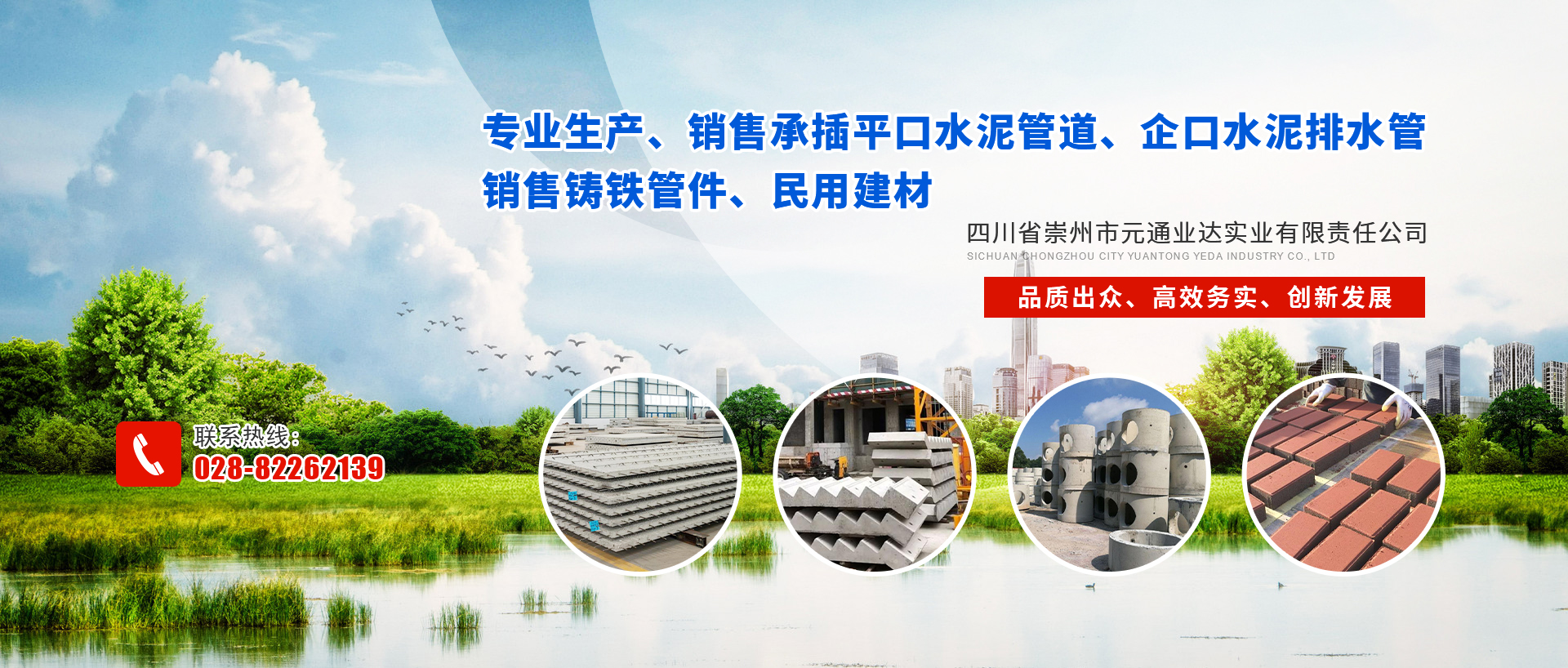 四川省崇州市元通業(yè)達實業(yè)有限責任公司是專業(yè)生產、銷售承插平口水泥管道、企口水泥排水管、銷售鑄鐵管件、民用建材的企業(yè)。自創(chuàng)辦以來,本著誠信經營的原則,積極進取、勇于開拓,經過多年的努力拼搏,隨企業(yè)不斷拓展壯大,企業(yè)于2002年8月26日重組注冊四川省崇州市元通業(yè)達實業(yè)有限責任公司,法人代表為王自立。 目前鋼筋混凝土排水管是公司的主導產品。管徑:Φ200——Φ3550mm,長度2000—2500mm。公司有多條生產線,年生產能力1000公里以上,產品還有與管道安...